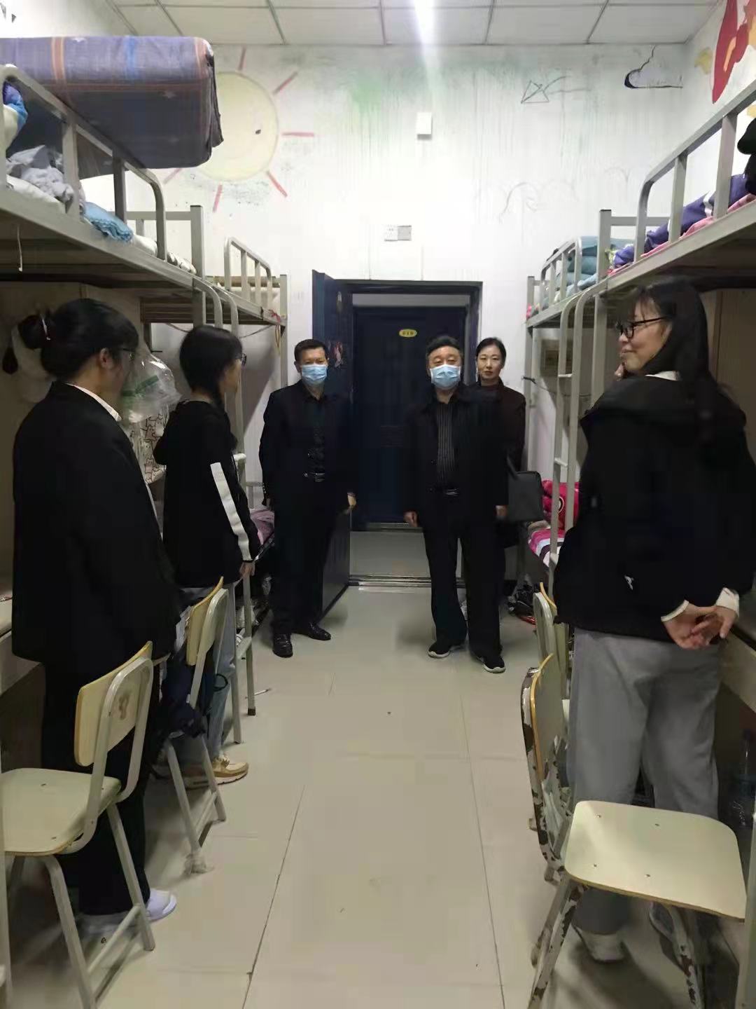 领导和老师们每到一间宿舍,都认真询问同学们关于宿舍的具体情况。学生宿舍作为学生的重要生活场所,不仅要保持宿舍内卫生整洁,更要注重宿舍中和谐氛围的养成,同学之间相处融洽,形成良好的生活习惯和学习氛围,更是学生宿舍中不断需要完善的方面。