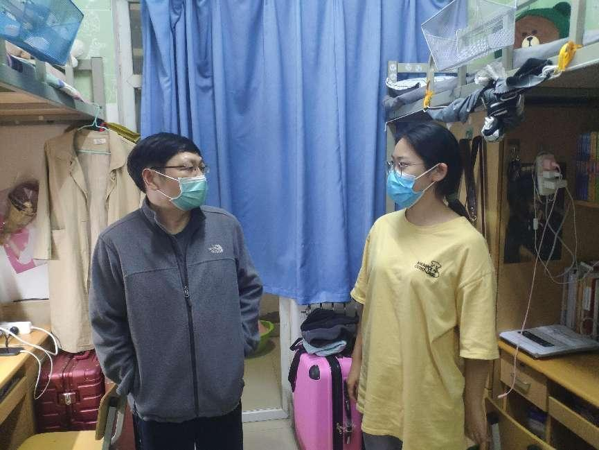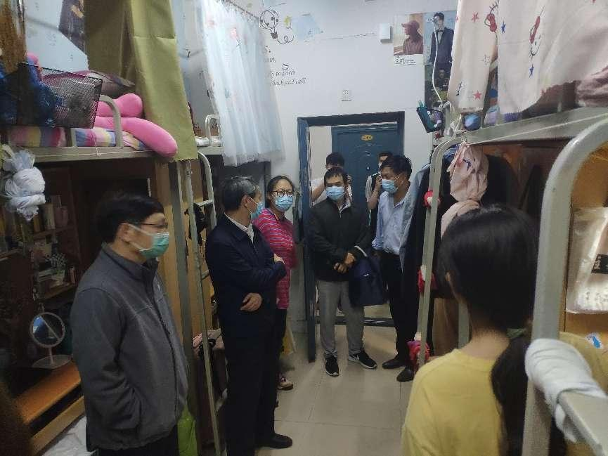 2022年5月6日晚上,大风肆虐,气温骤降,校长李学志和纪委书记刘云兵到祥园宿舍三号楼、六号楼的校领导联系的ylzzcom永利总站线路检测学生宿舍看望学生。