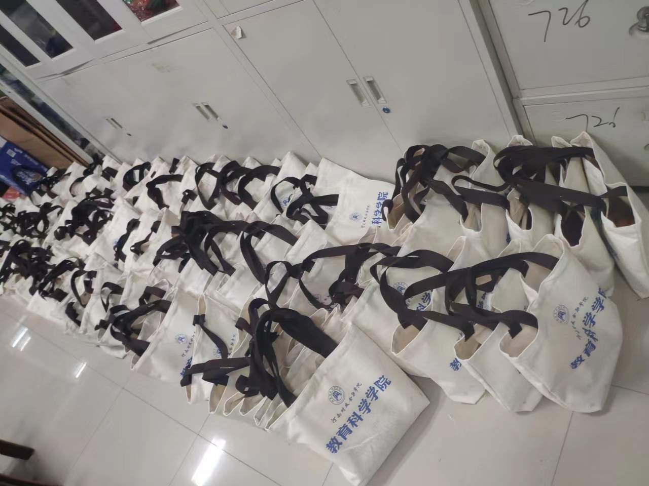 张震老师把学院精心准备的学习资料包送到学生宿舍,学习资料包内有定制帆布包、笔记本、口罩、水笔及象征“平平安安”“心想事成”“指定行”的三种水果等。