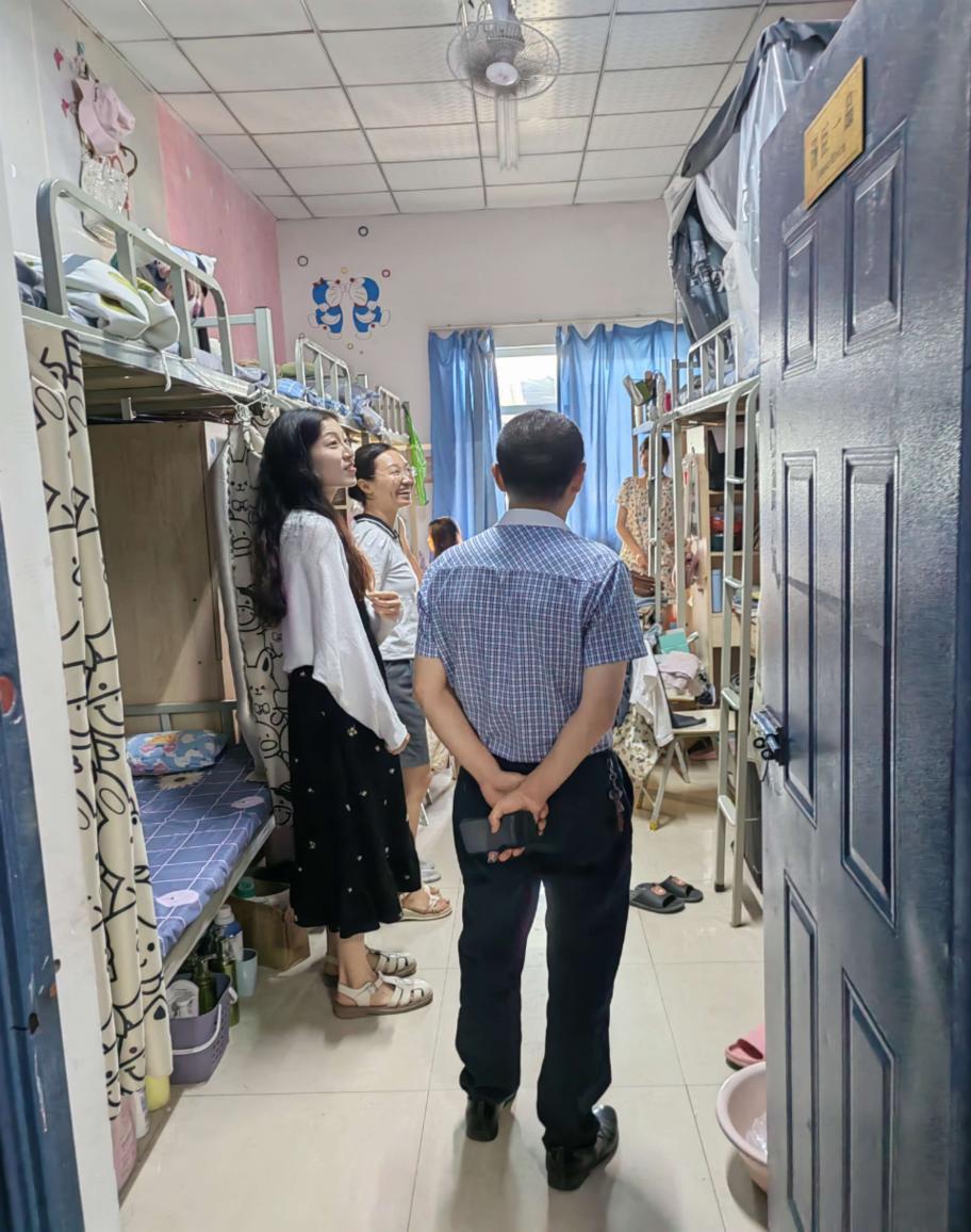 走访过程中,领导和老师们仔细检查了宿舍的电源插座、空调等设施,王书记提醒同学们要时刻加强安全意识,严格遵守宿舍规定,严禁使用违禁违规电器,共同营造一个安全、和谐的宿舍环境。蔡书记还贴心地提醒同学们要注意天气变化,做好个人保暖和防护,预防季节性疾病。在与同学们的交流中,老师们详细询问了大家的学习、生活情况,并认真听取了同学们对学院各项工作的意见和建议。辅导员老师鼓励同学们珍惜大学时光,努力学习专业知识,不断提升自己的综合素质,同时叮嘱同学们要保持良好的作息习惯。