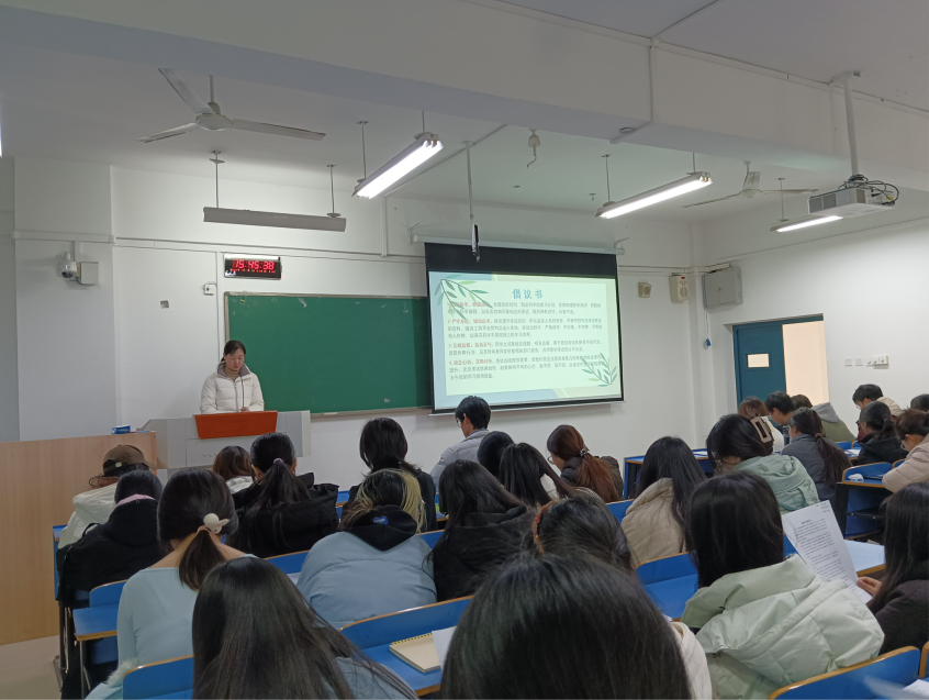 会议伊始,杨老师强调了学风建设的重要性,在优良学风的熏陶下,学生能够培育出勤奋、自律、严谨、创新等良好品质,有助于学生明确学习目标,提升学习效率。紧接着,杨老师分析了当前学风中存在的不良问题,并带领同学们深入学习《大学生综合素质测评办法》以及《ylzz总站线路检测第二课堂学分认定管理办法(修订)》等文件精神,鼓励同学们利用寒假时间参与社会实践,提高自己的综合素养。最后,杨老师宣读诚信考试的倡议书,并组织同学们签订诚信考试承诺书。