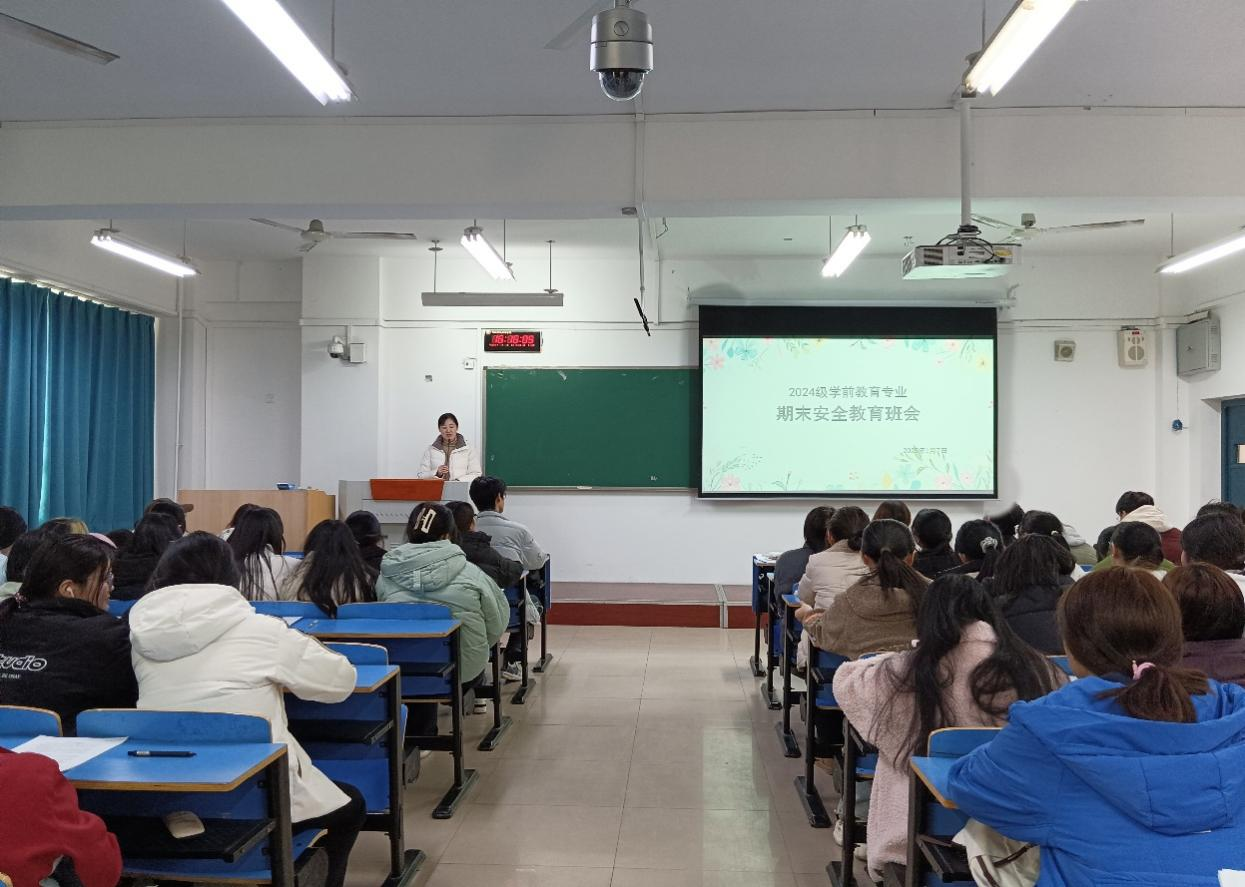 为做好寒假期间安全教育管理工作,提高学生安全防范意识,2025年1月7日,ylzzcom永利总站线路检测于启智楼308举行2024级学前教育专业期末安全教育班会,我院2024级学前教育专业全体学生参加,会议由辅导员杨晶晶老师主持。